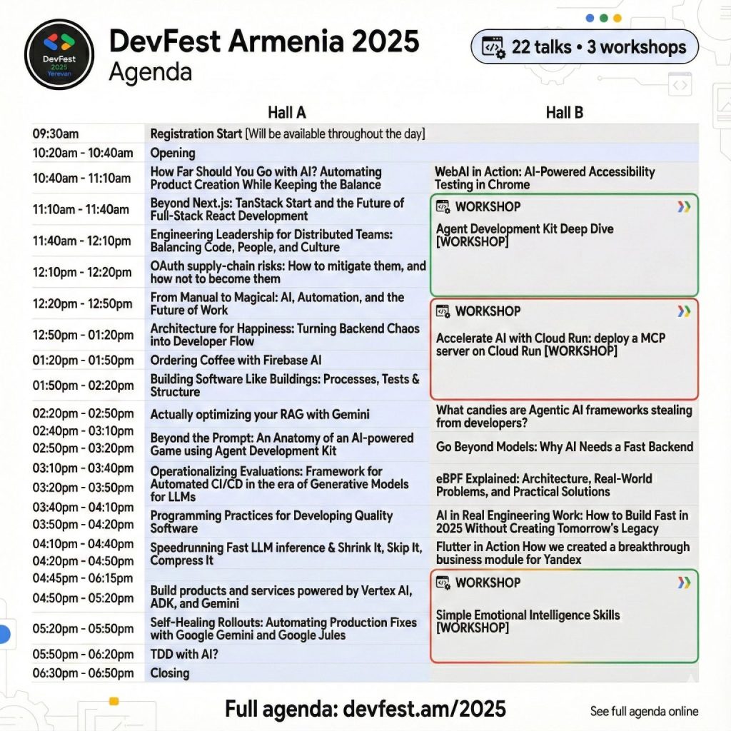 As part of Google’s global DevFest initiative, DevFest Armenia remains free and accessible, made possible by dedicated community volunteers, partner organizations, and speaker contributions. The event aims to foster continuous learning, collaboration, and innovation across Armenia’s growing developer community.